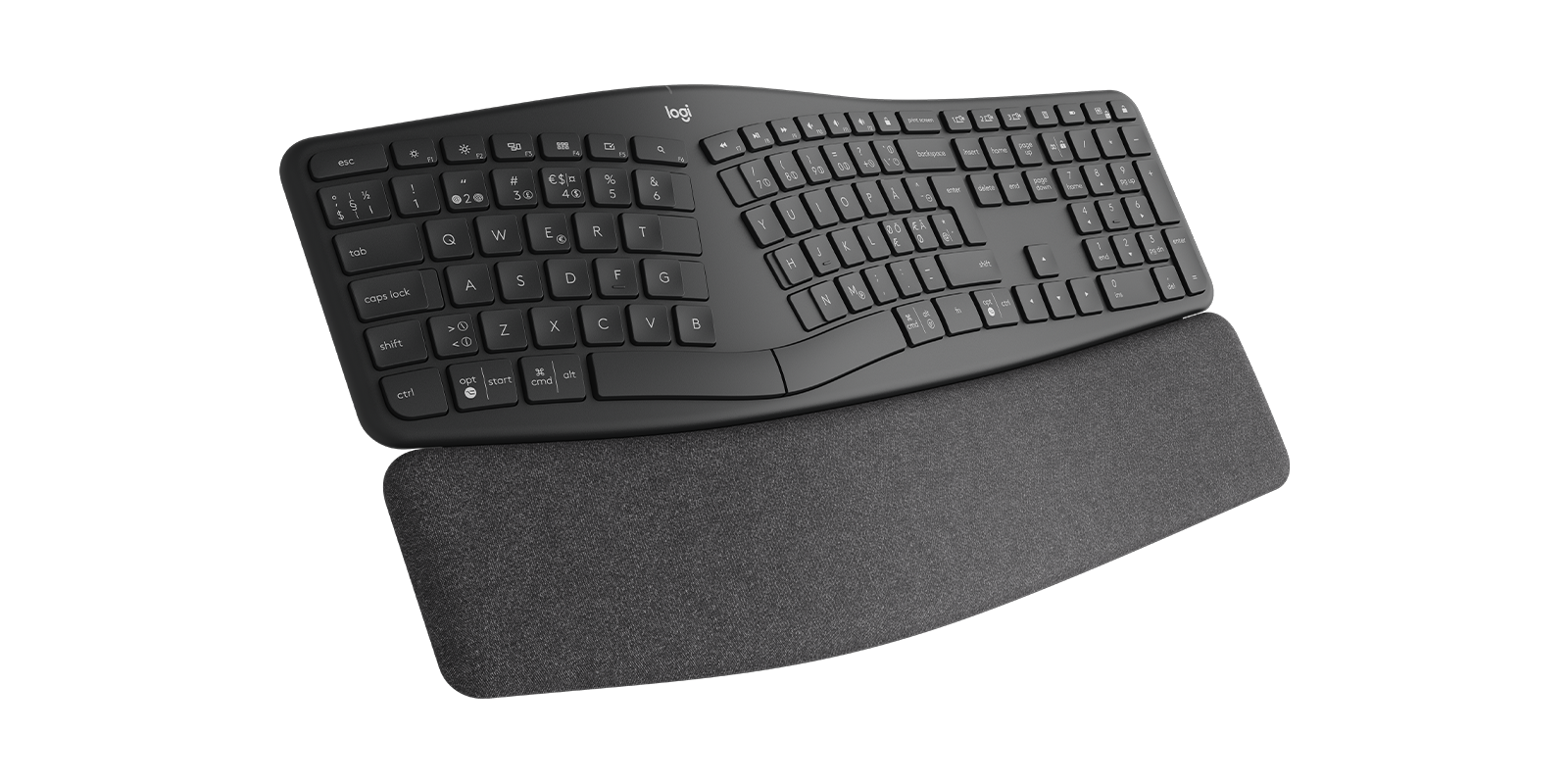 The Logitech K860 Ergo Wireless Split Keyboard US is an ergonomic wireless keyboard designed for maximum comfort and support during prolonged typing. This keyboard reduces hand strain thanks to its ergonomic design and wrist support, making it an ideal choice for everyday office use.