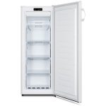 Zamrzivač je opremljen elektronskim upravljanjem iza vrata, zvučnim alarmom za otvorena vrata i podesivom temperaturom, što ga čini jednostavnim za korišćenje. Sa pet fioka, omogućava organizovano skladištenje, dok desno promenljivo otvaranje vrata pruža fleksibilnost u postavljanju.