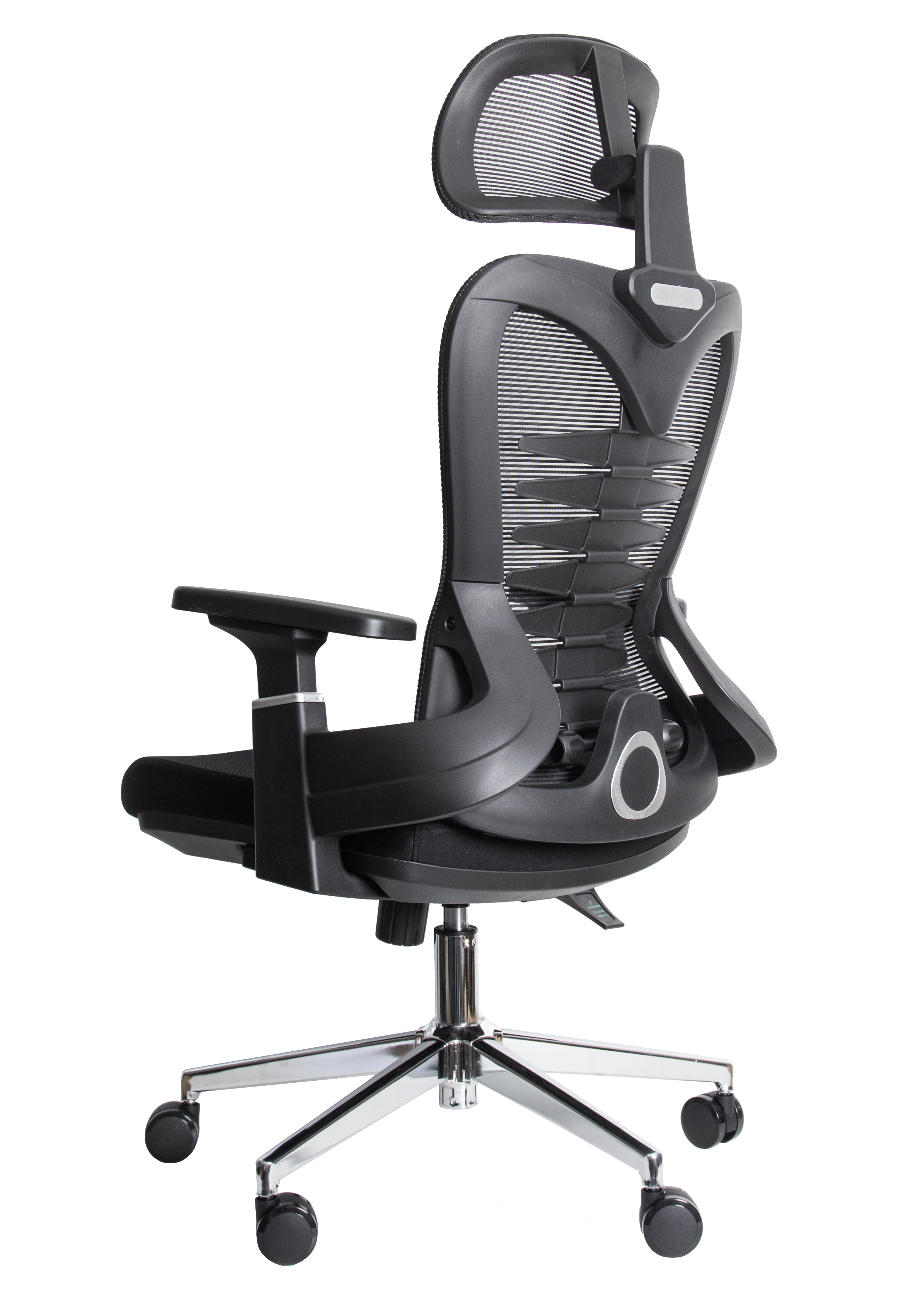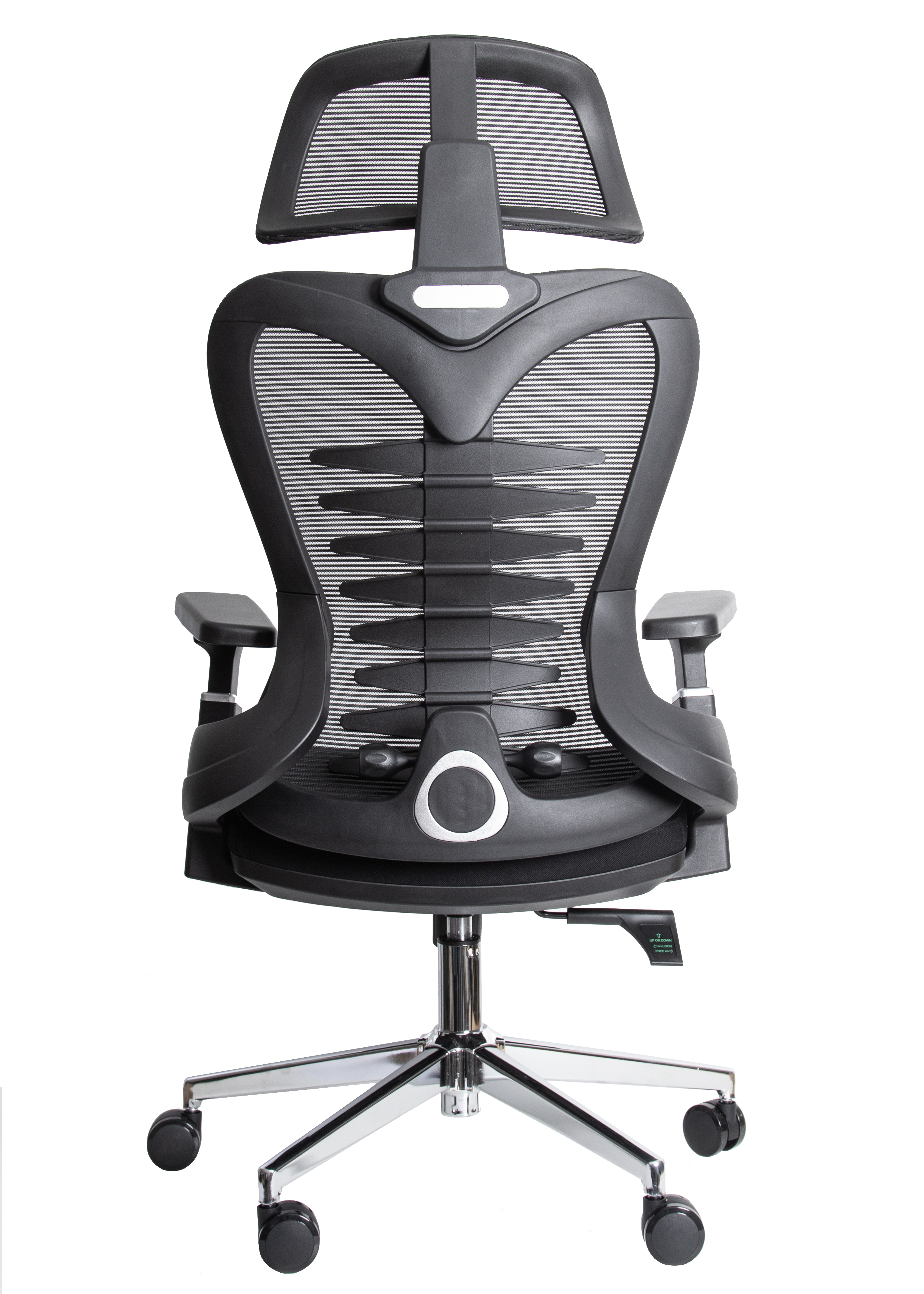 Stolica je idealna za kancelarije i kućne radne prostore, pružajući vrhunski komfor i dugotrajnu izdržljivost. Napravljena je od visokokvalitetnih materijala kao što su nylon plastika i mrežasta tkanina, sa stabilnom hromiranom bazom i BIFMA sertifikovanim gasliftom klase 3. Dimenzije stolice su 65 x 55 x 116-136 cm, a maksimalna nosivost je 150 kg.