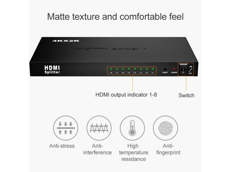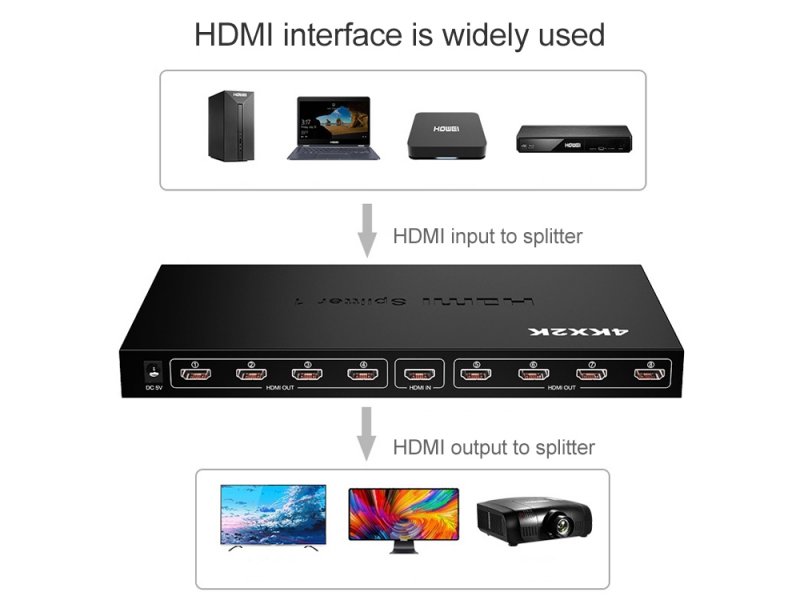 Kupovinom ovog proizvoda dobijate HDMI spliter sa mogućnošću povezivanja jednog izvora na osam displeja.