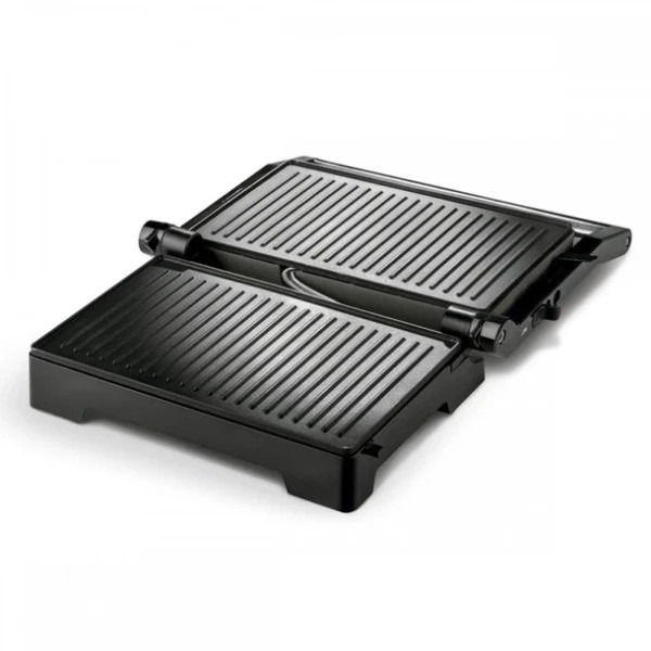 Ovaj kompaktni grill je idealan za sve koji žele jednostavno i brzo pripremiti ukusne obroke. Njegov sistem otvaranja pod uglom od 180° omogućava korišćenje obe ploče istovremeno, što štedi vreme i povećava efikasnost. Zahvaljujući antiadhezivnim pločama, čišćenje je brzo i jednostavno, a ergonomski držač olakšava prenos.