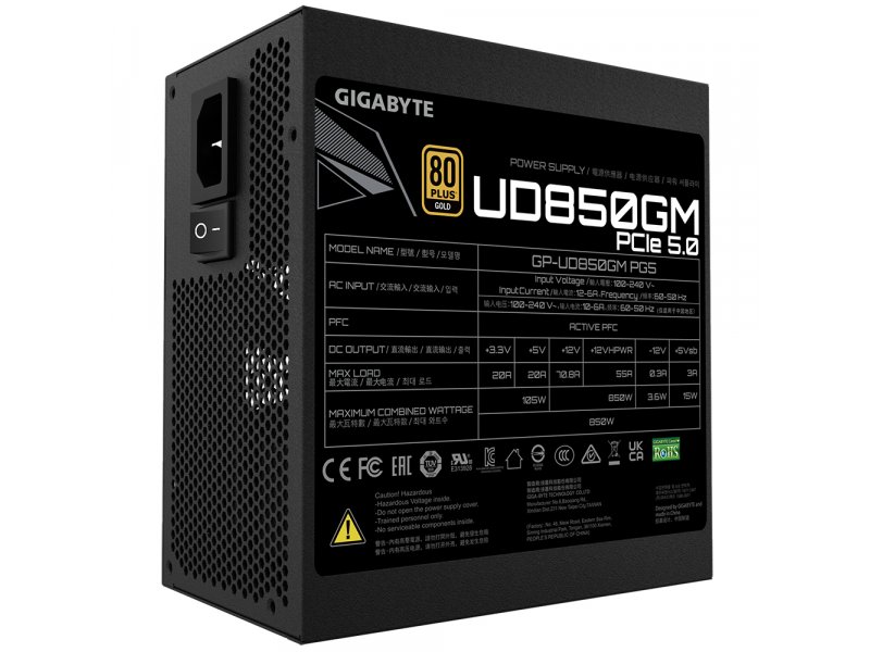 Napajanje 850W Gigabyte GP-UD850GM PG5 GEU2 80+ Gold je modularno napajanje dizajnirano za napajanje računara visokih performansi. Ovo napajanje pruža stabilnu i efikasnu energiju, što ga čini idealnim za zahtevne korisnike i gejmere.