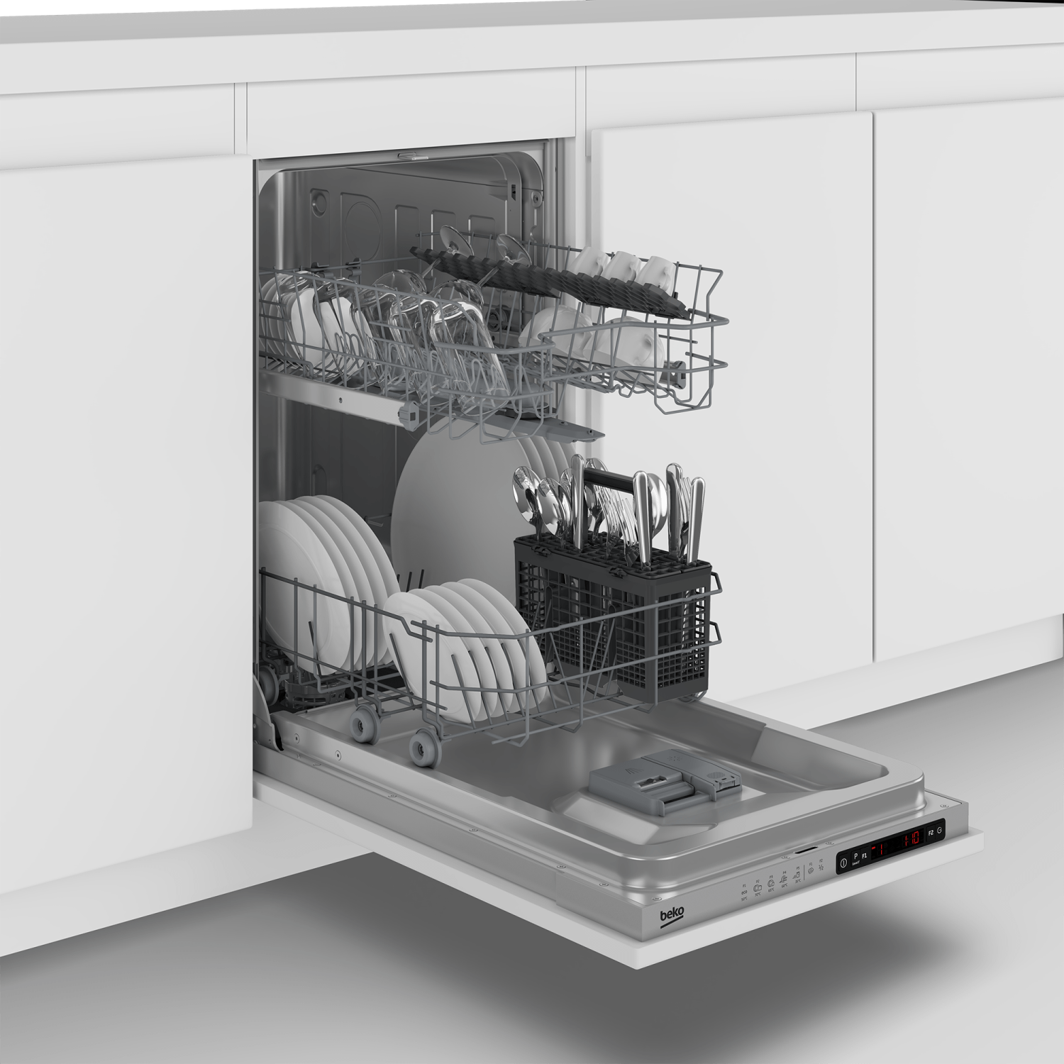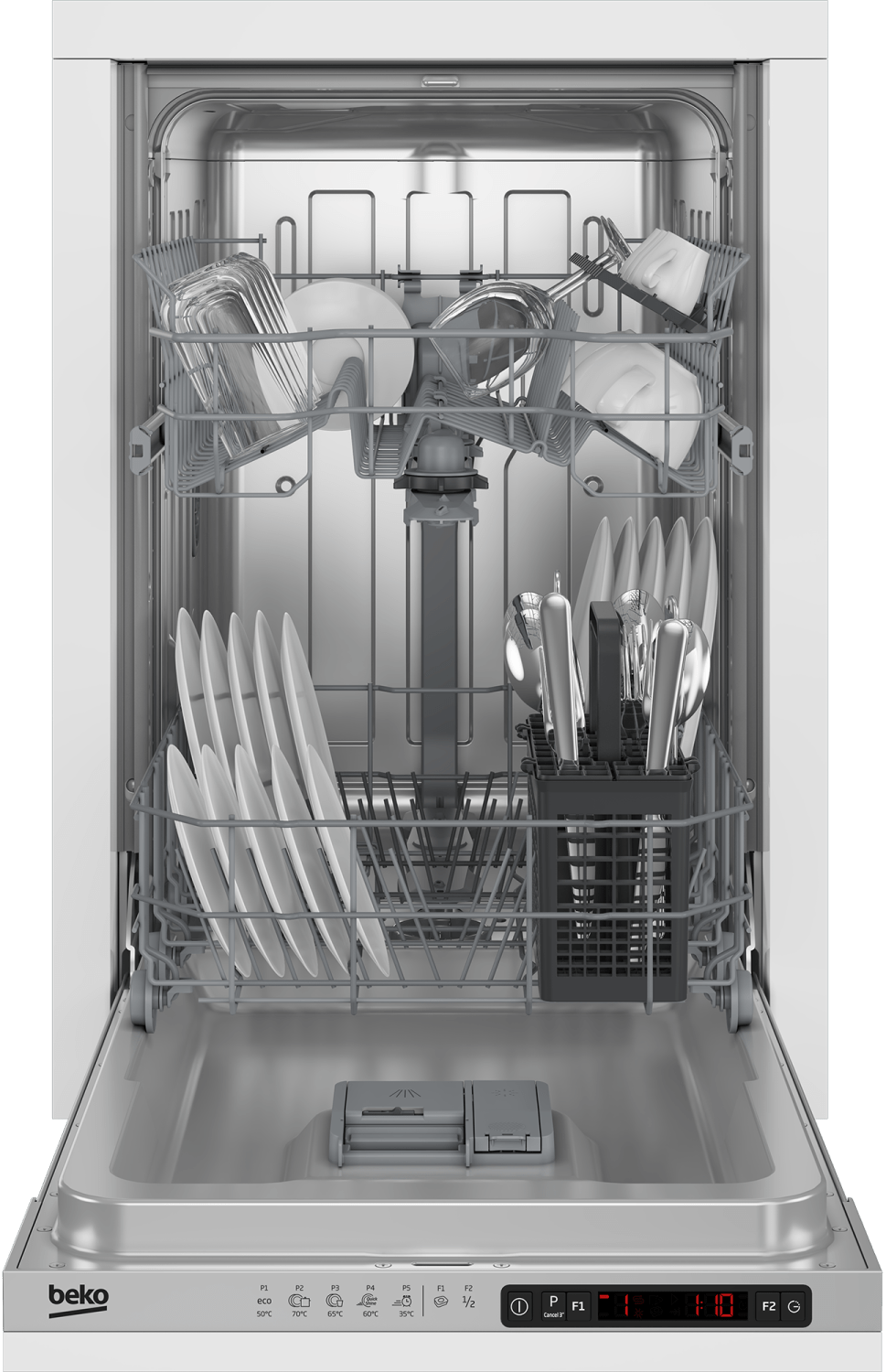 Ugradna mašina za sudove Beko DIS 35023 E je kompaktna mašina širine 45 cm, namenjena za pranje do 10 kompleta posuđa. Ova mašina pruža dodatnu sigurnost zahvaljujući Aquastop funkciji koja sprečava poplave i neželjeno curenje vode, čak i kada niste kod kuće.